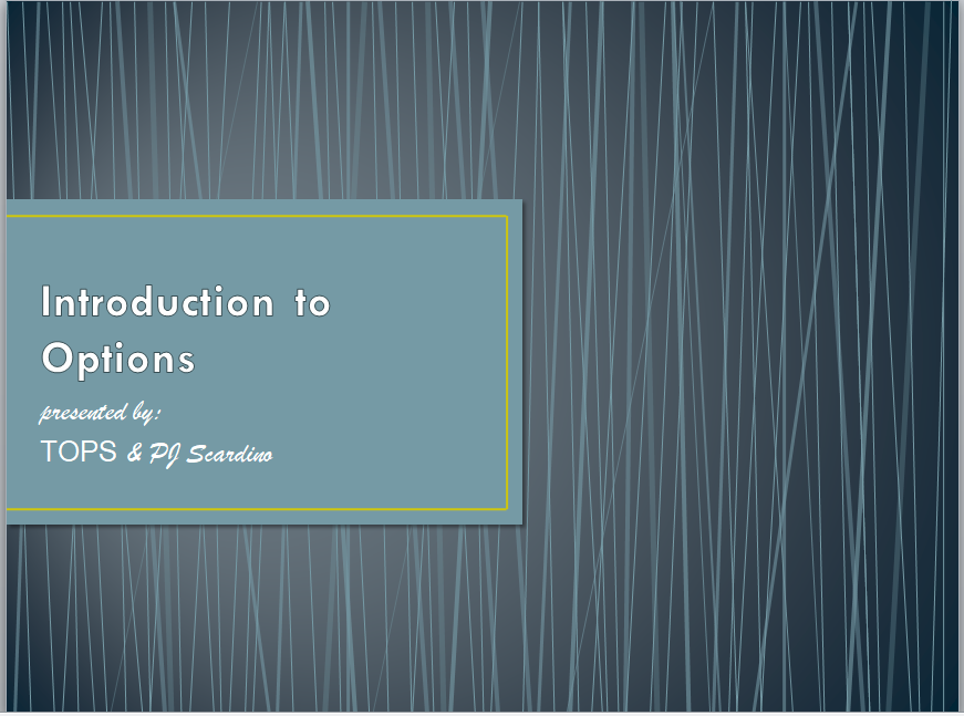 Buying and selling stocks may not be easy, but it is relatively straight forward. Trading options, on the other hand, is much more complex. An option is a financial instrument derived from an underlying security like a stock. The variables used to establish an option’s value have strange names like Delta, Gamma, Rho and Theta. The mathematical models used to establish values are so complex that it may seem like it is all Greek to you; but, many industries have their own unique jargon. The business of option trading has its own industry specific vocabulary too. That specialized vocabulary is a collection of new words (like “ITM Call” or “Strangle”) used to provide clarity and precision so people may more easily communicate with each other and understand what they are trading. In this course I will teach you that vocabulary and more. This class is not a seminar on any specific trading system or method. It is an in-depth series of lessons that will teach you the fundamentals of options.